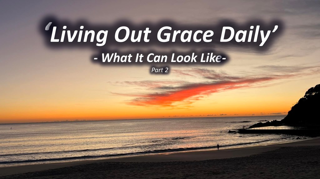 We hear a lot about ‘Grace’, in the church or at a dinner table. But how do we actually ‘live out’ this ‘Grace’ we say we believe in? This series will explore some of the practical ways we can practice living the ‘Grace’ that lives inside us. Grace is a person, His name is Jesus… so maybe another way of looking at this is…’What does living out ‘Jesus’ in us daily look like! Enjoy!!