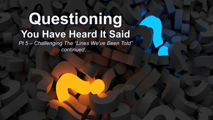 Questioning: You Have Heard It Said Pt 5 – Challenging The “Lines We’ve Been Told” con’t